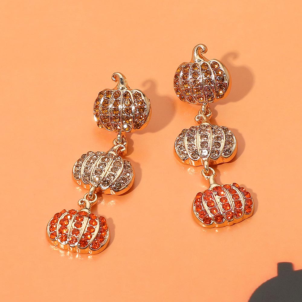iLLASPARKZ Rhinestone Embellished Triple Pumpkin Link Drop Earrings