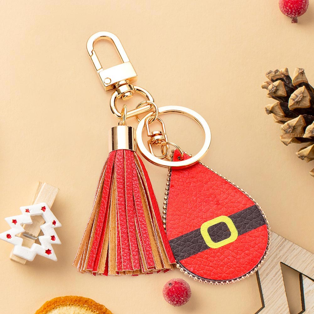 iLLASPARKZ Santa Claus Cloth Print Faux Leather Teardrop Tassel Keychain / Bag Charm