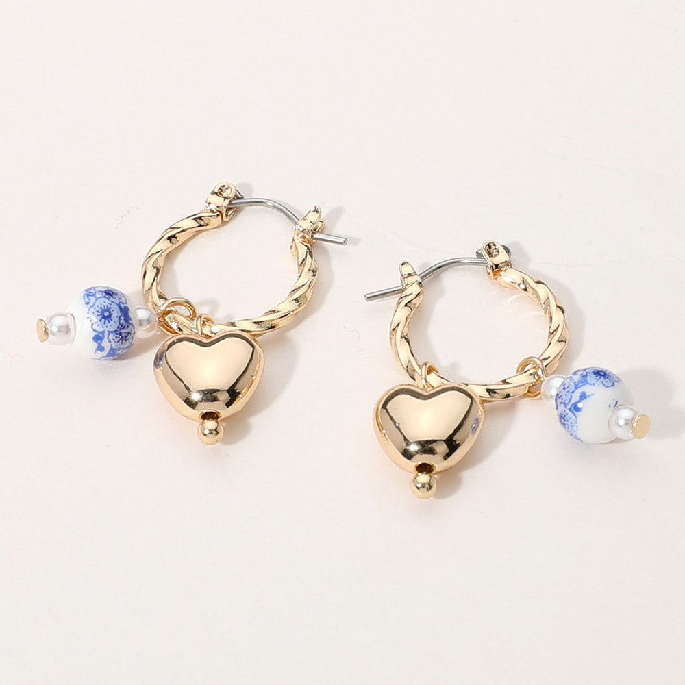 iLLASPARKZ SECRET BOX_Metal Heart Pearl Floral Ceramic Ball Charm Dangle Pin Catch Hoop Earrings