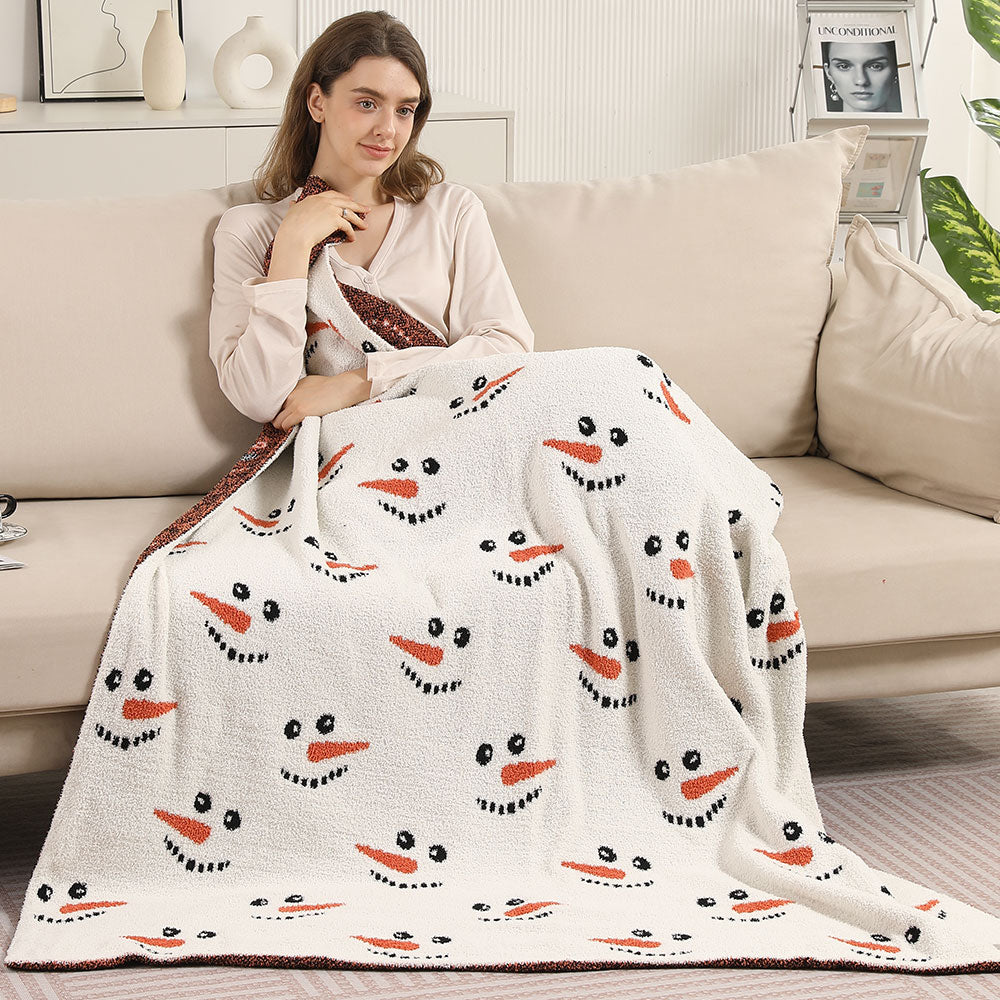 iLLASPARKZ Snowman Face Patterned Reversible Throw Blanket