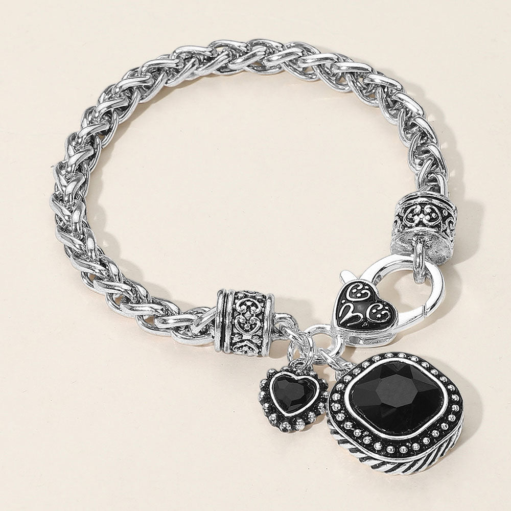 This braided chain bracelet features ornate detailing and sparkling heart charms, adding a touch of romance and vintage flair to your accessories. A secure clasp and elegant finish make it ideal for both everyday wear and special occasions.