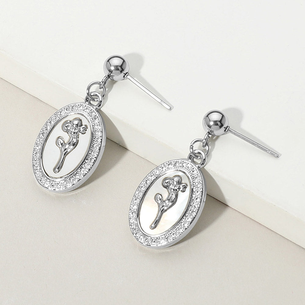 iLLASPARKZ Stainless Steel Stone Paved Tulip Flower Embossed Mother of Pearl Oval Dangle Earrings