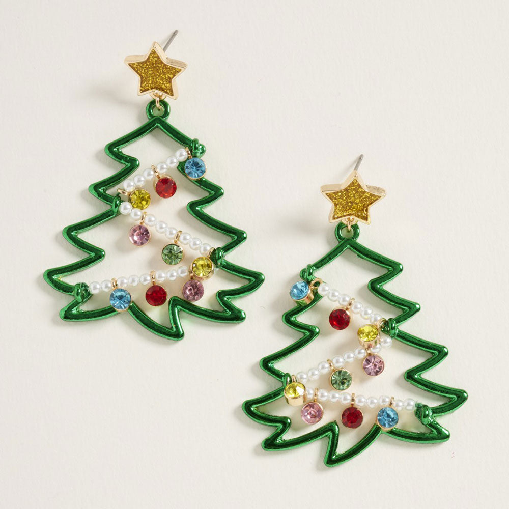 iLLASPARKZ Star Top Pearl Stone Ornament Christmas Tree Dangle Earrings