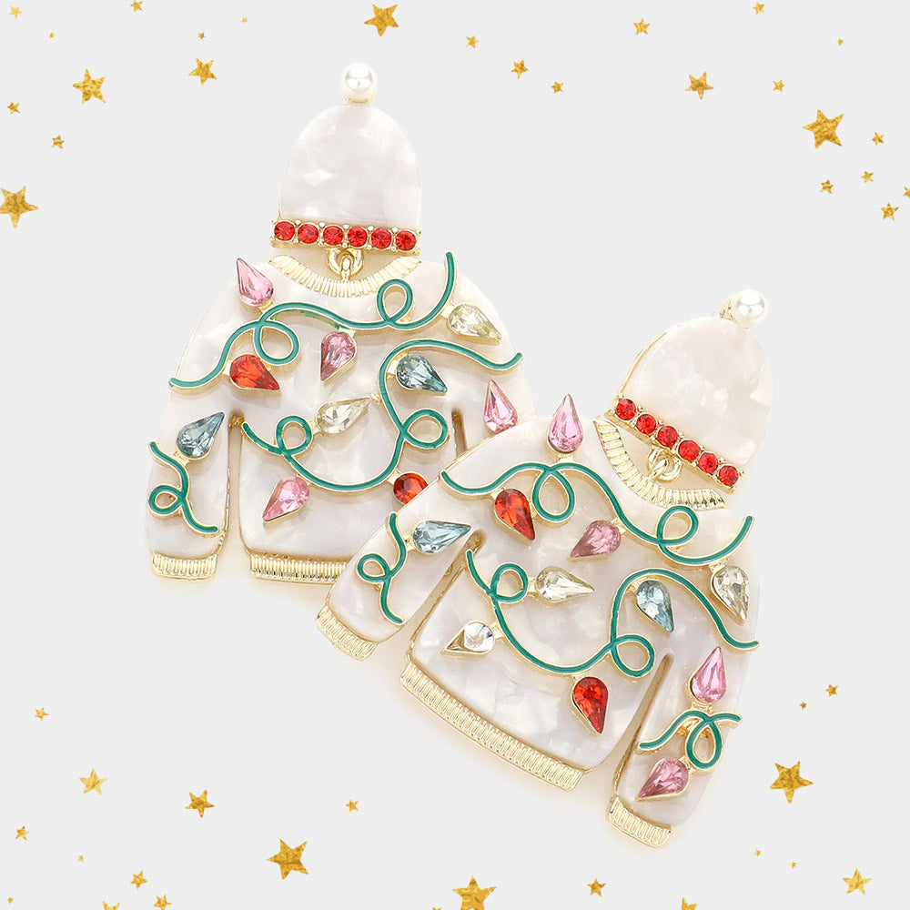 iLLASPARKZ Teardrop Stone Embellished Celluloid Acetate Christmas Sweater Dangle Earrings