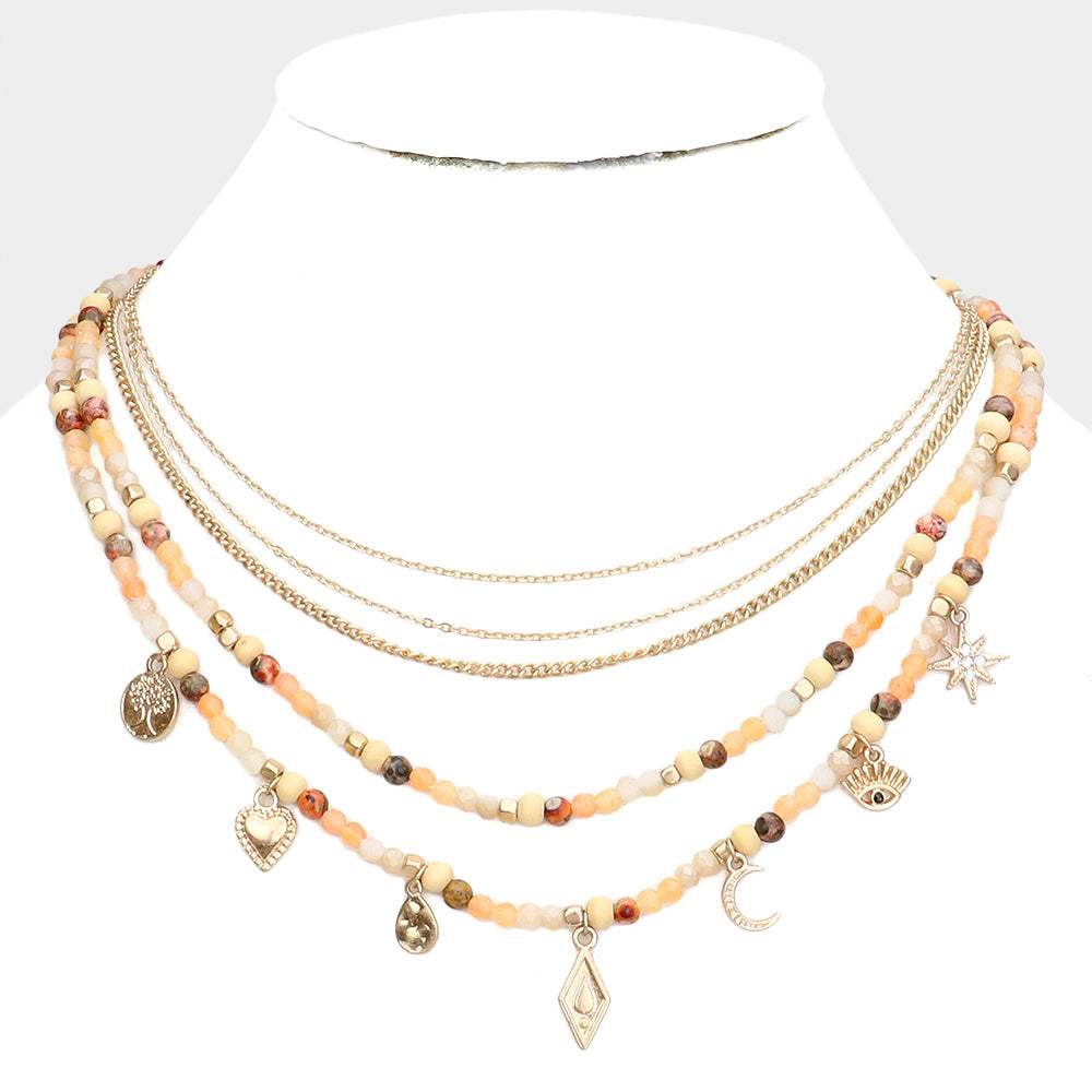 iLLASPARKZ Tree of Life Heart Teardrop Crescent Moon Evil Eye North Star Pendant Station Multi Layered Necklace