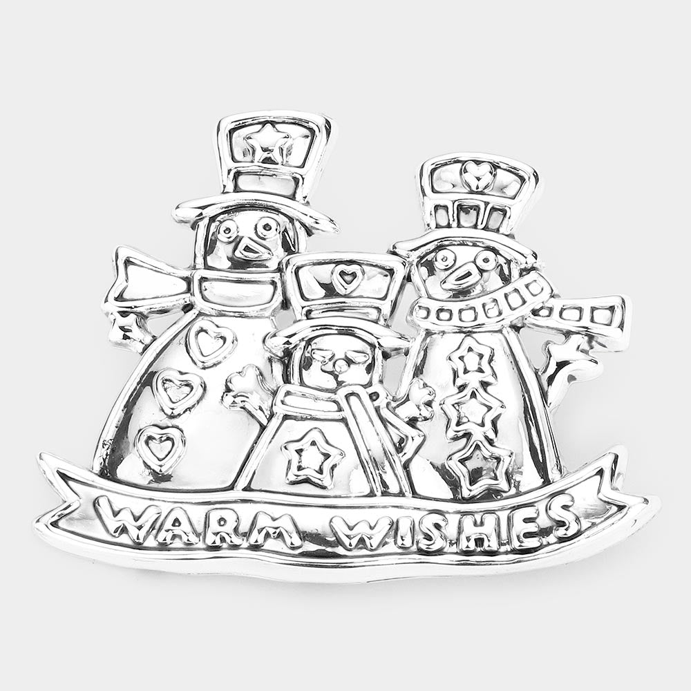 iLLASPARKZ Triple Metal Snowman Pin Brooch / Pendant