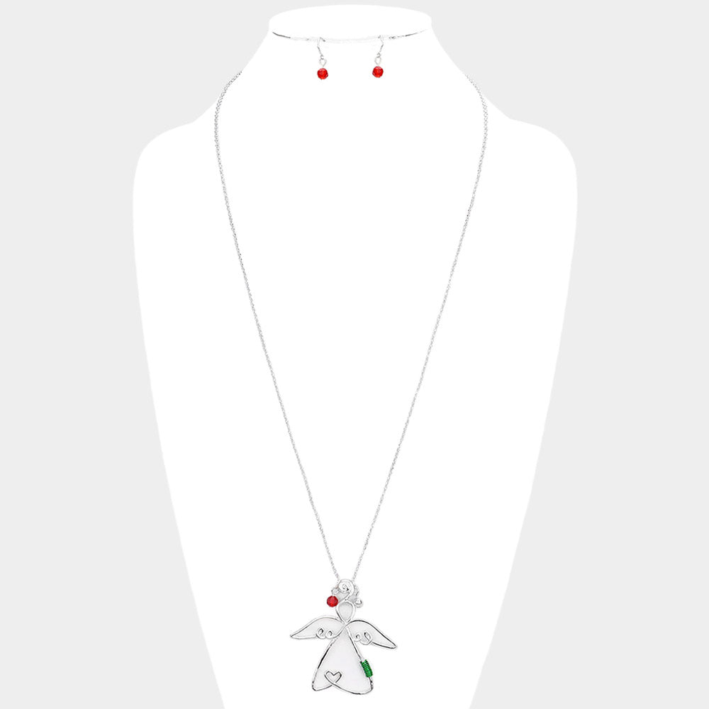 iLLASPARKZ White Christmas Angel Pendant Long Necklace