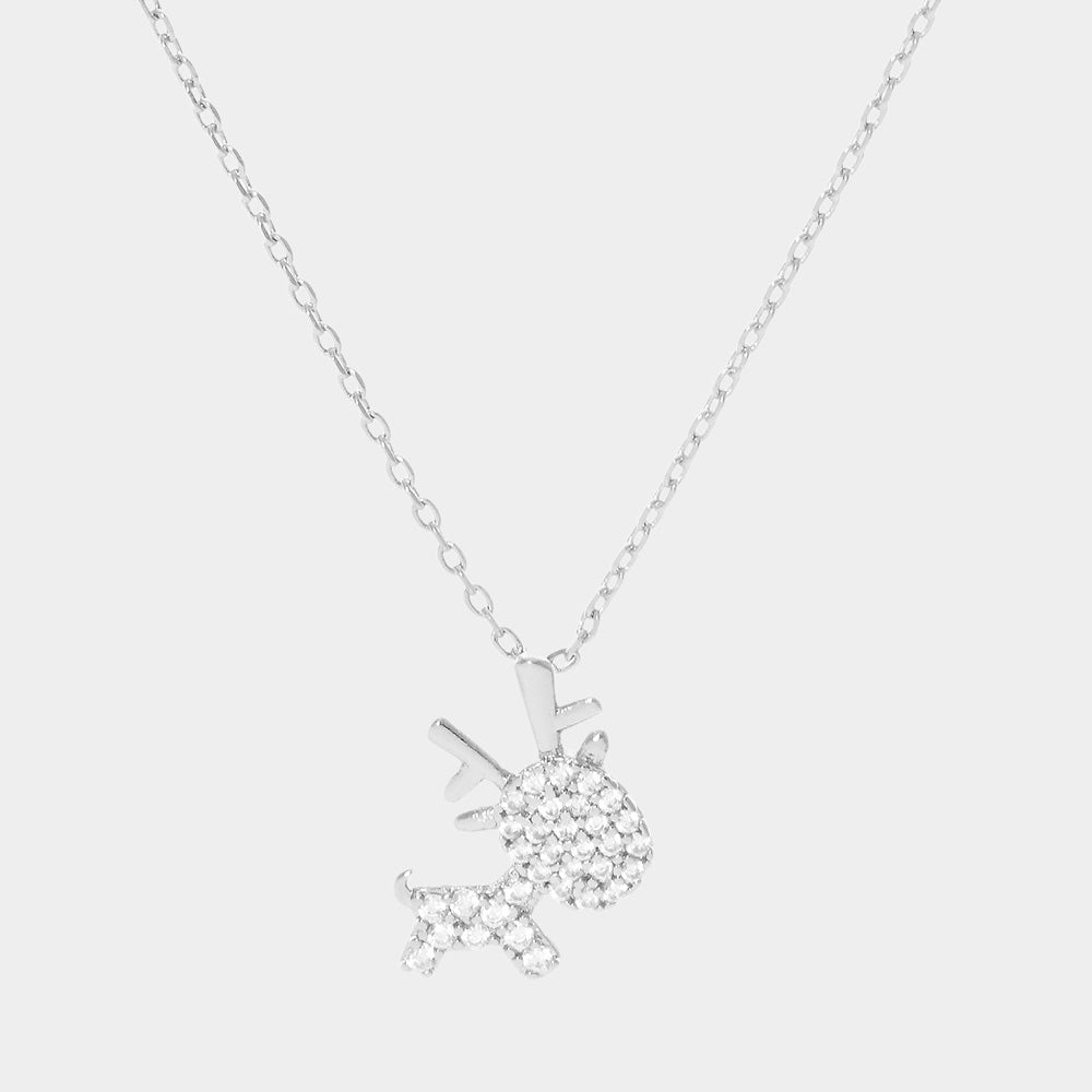iLLASPARKZ White Gold Dipped CZ Reindeer Pendant Necklace