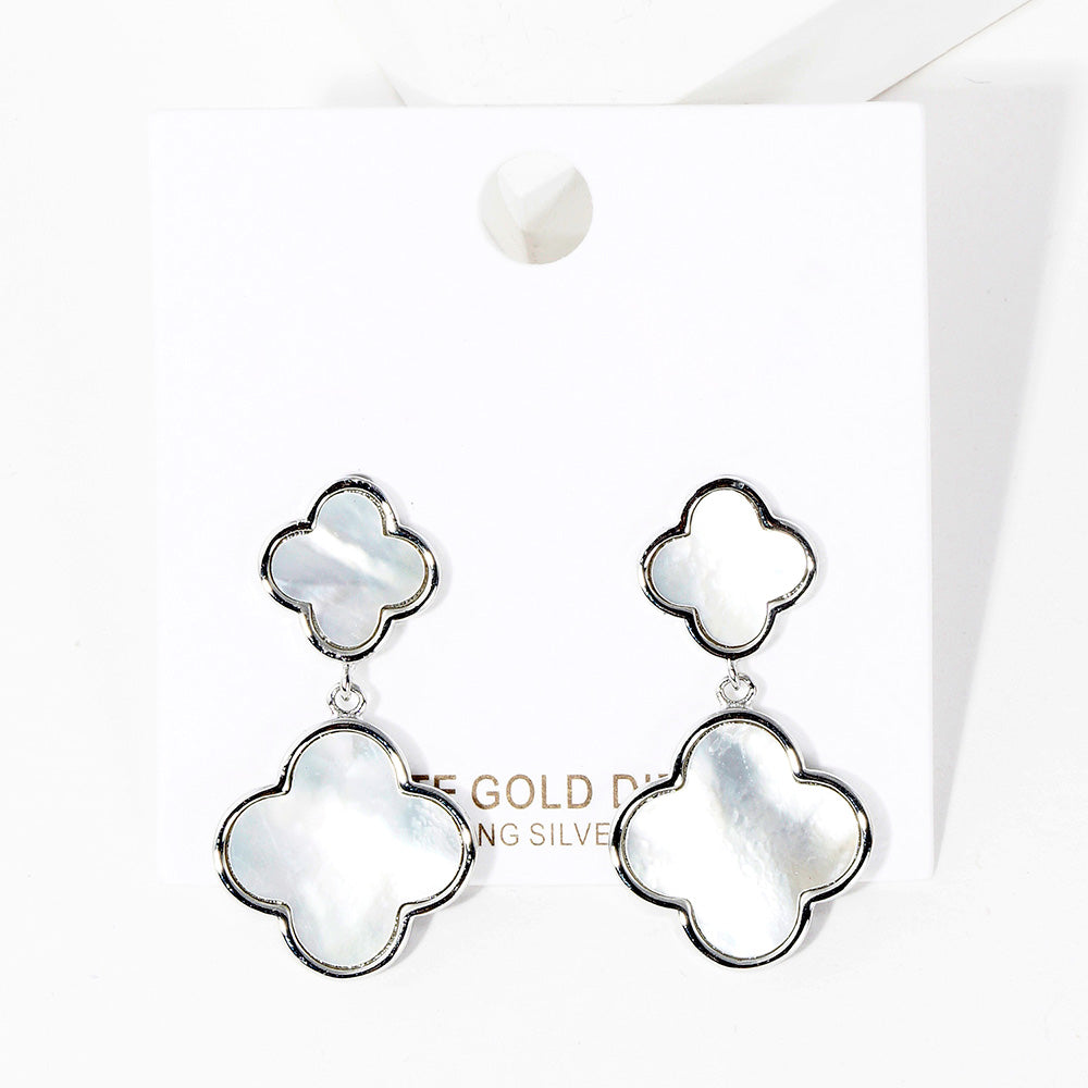 iLLASPARKZ White Gold Dipped Double Mother of Pearl Quatrefoil Link Dangle Earrings