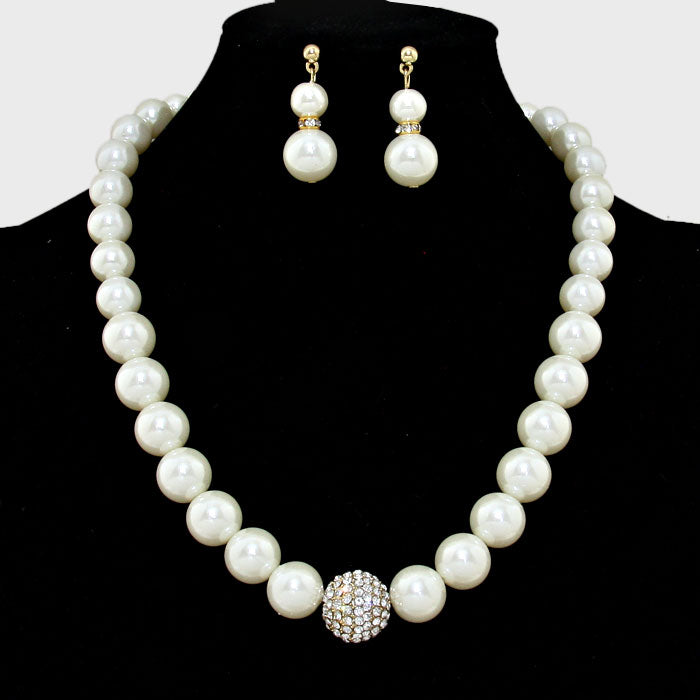 • Crystal Ball Accented Pearl Necklace
