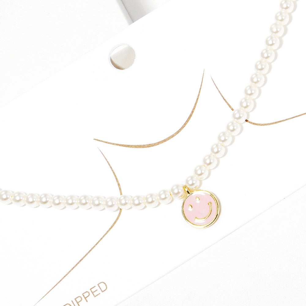 iLLASPARKZ Gold Dipped Brass Metal Enamel Smile Pendant Pearl Necklace