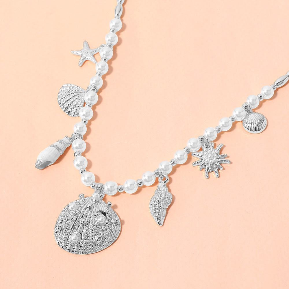 iLLASPARKZ Sea Shell Puka Shell Starfish Charm Station Pearl Necklace