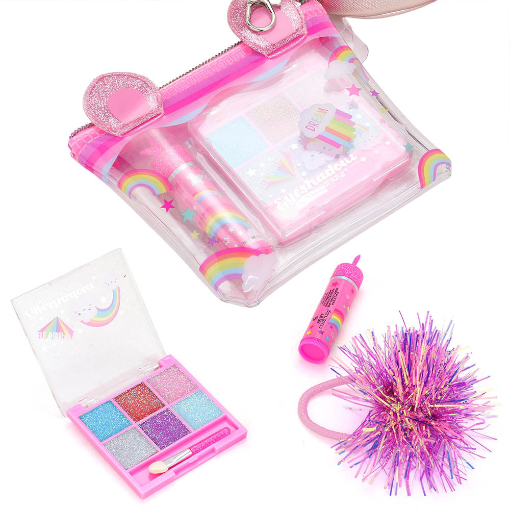Includes : 1 Mini Backpack, 1 Pouch, 1 Lip Balm(0.15oz./4.25g), 1 Eyeshadow Palette(0.15oz./4.25g), 1 Applicator, 1 Hair Tie