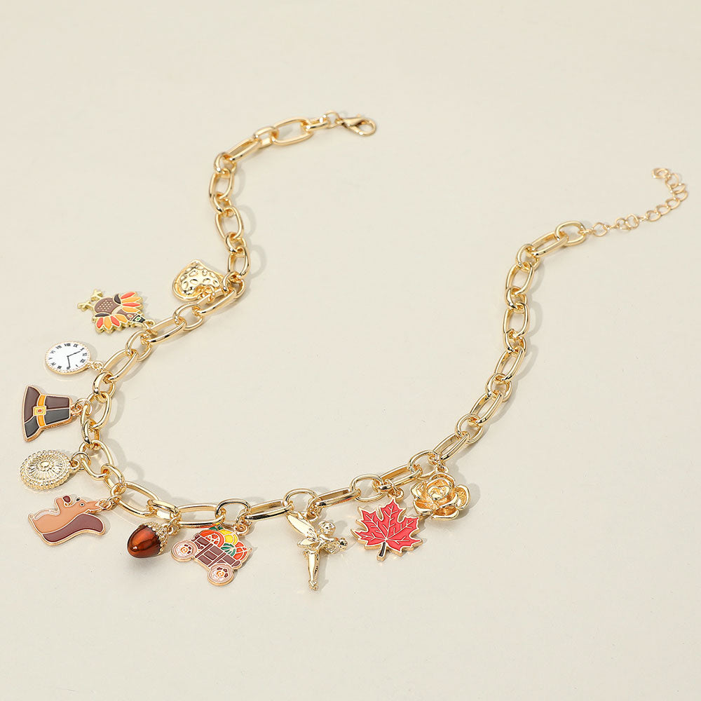 iLLASPARKZ Enamel Squirrel Turkey Maple Leaf Hat Clock Metal Heart Flower Angel Charm Station Necklace