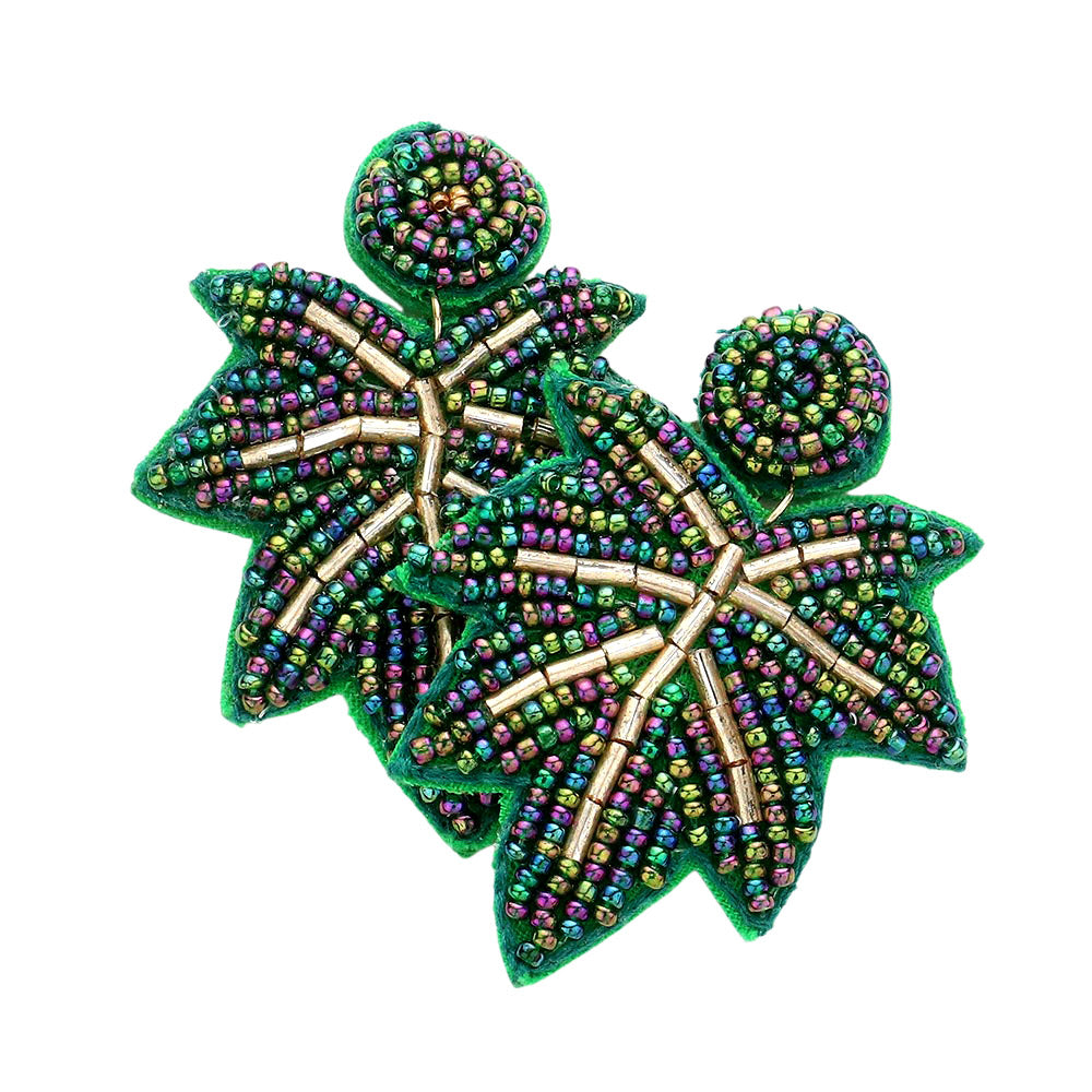 Celebrate bold style with handmade leaf beaded earrings featuring intricate detailing and vibrant flair. Perfect for festivals, parties, or making a statement, these earrings add unique charm to any outfit.