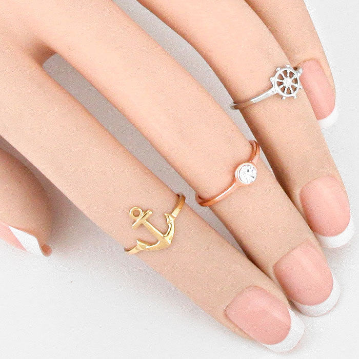 iLLASPARKZ 3-PCS Anchor Midi Ring Set