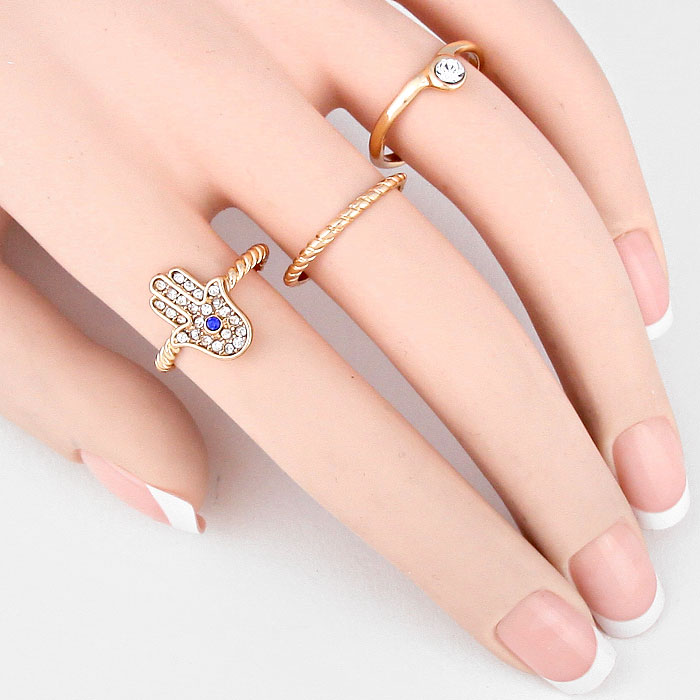 iLLASPARKZ 3-PCS Crystal Pave Evil Eye Hamsa Hand Ring Set