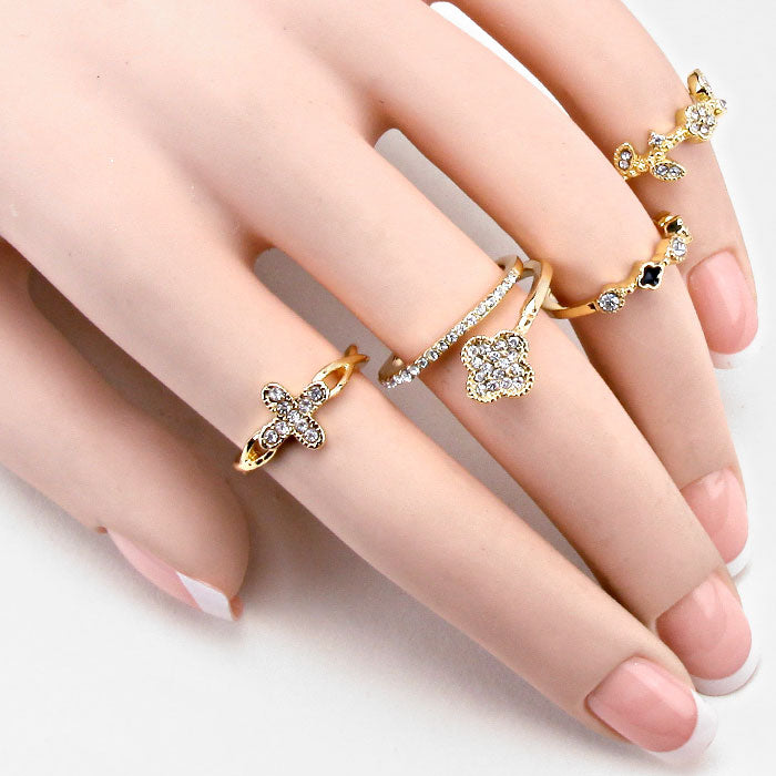 iLLASPARKZ 4-PCS Crystal Clover Ring Set