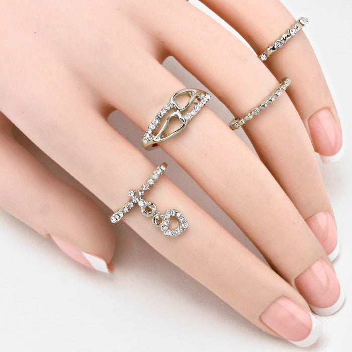iLLASPARKZ 4-PCS Crystal Heart Drop Ring Set