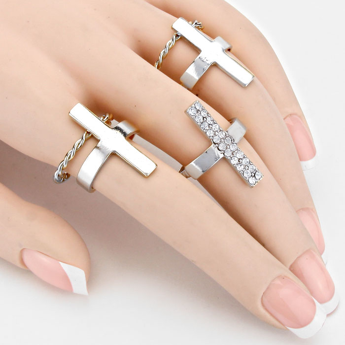 • 5-PCS Crystal Accented Cross Ring Set