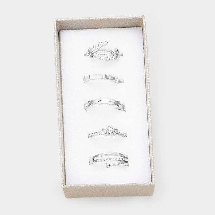 iLLASPARKZ 5PCS - Mixed Leaf Crystal Metal Rings