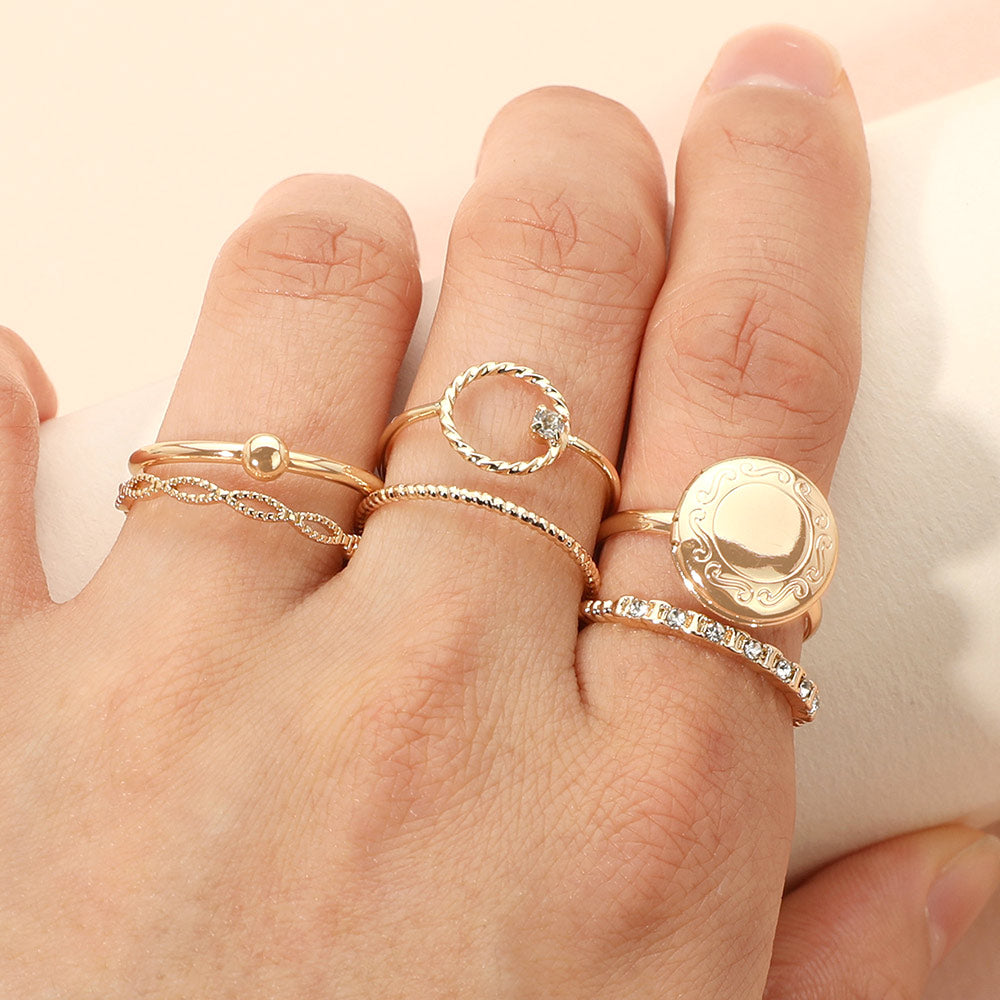iLLASPARKZ 6PCS - Metal Round Locket Stone Paved Dainty Stackable Ring Set