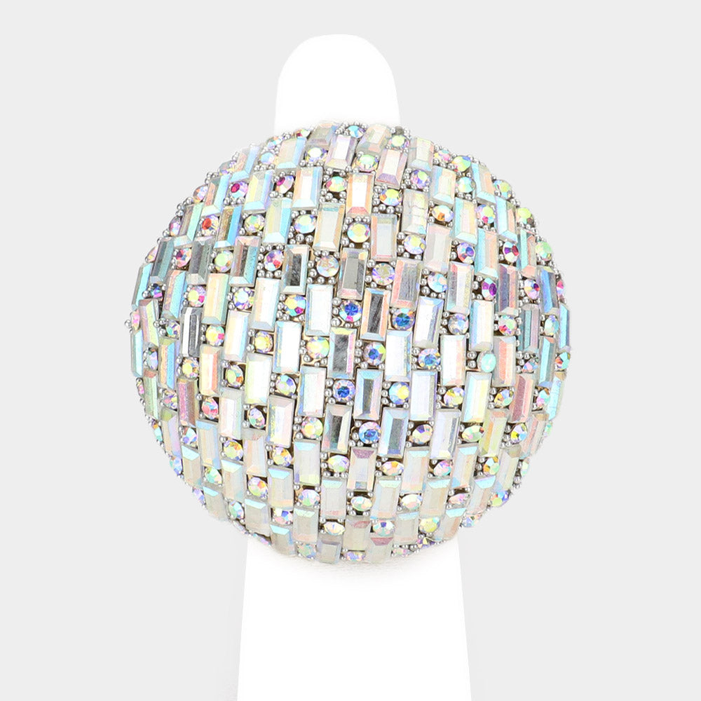 iLLASPARKZ Baguette Cut Rhinestone Embellished Dome Stretch Ring