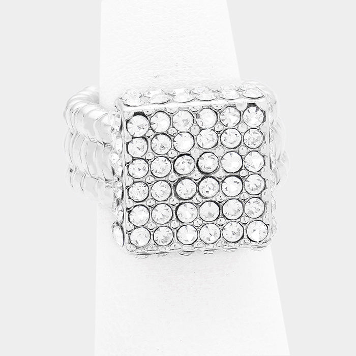 iLLASPARKZ Crystal Rhinestone Pave Square Stretch Ring