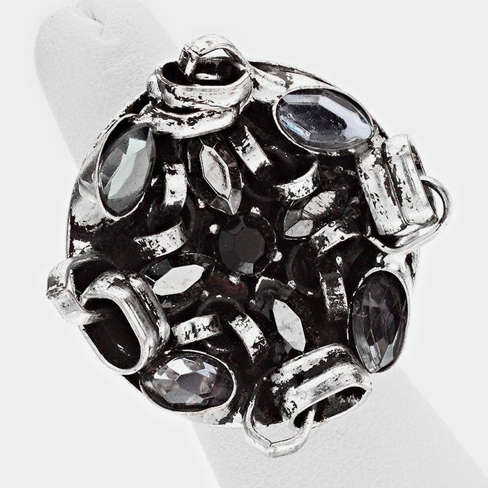 iLLASPARKZ Glass crystal & chunky metal stretch ring