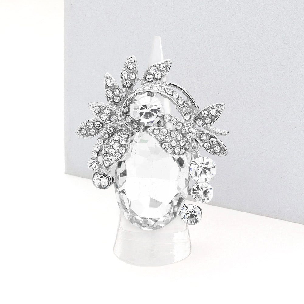 iLLASPARKZ Oval Stone Accented Leaf Cluster Stretch Ring