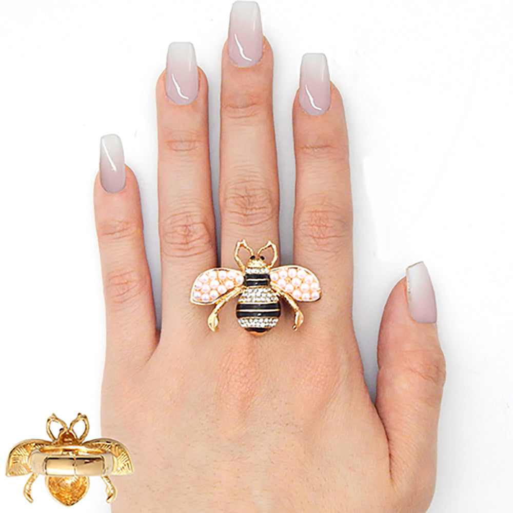 iLLASPARKZ Pearl Embellished Honey Bee Stretch Ring