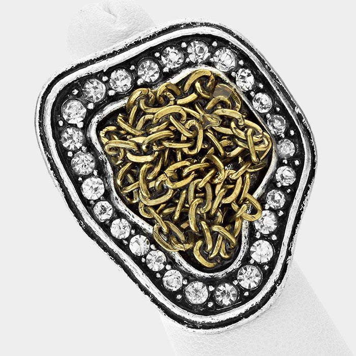 iLLASPARKZ Rhinestone cluster tangled metal chain stretch ring