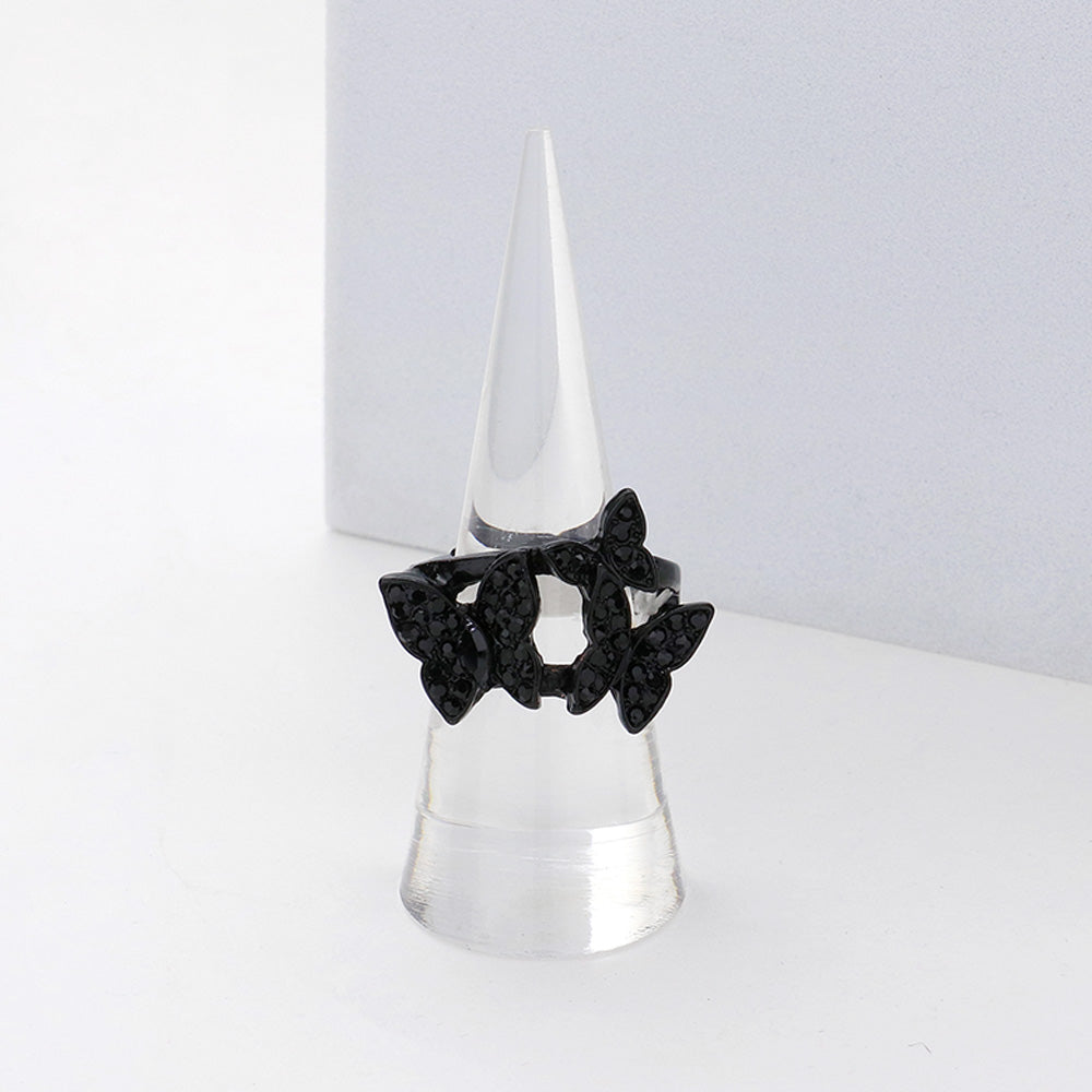 iLLASPARKZ Rhinestone Paved Triple Butterfly Stretch Ring