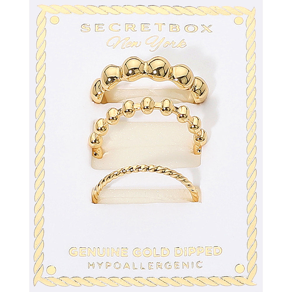 iLLASPARKZ SECET BOX_3PCS Genuine Gold Dipped Bubble Stackable Fashion Ring Set