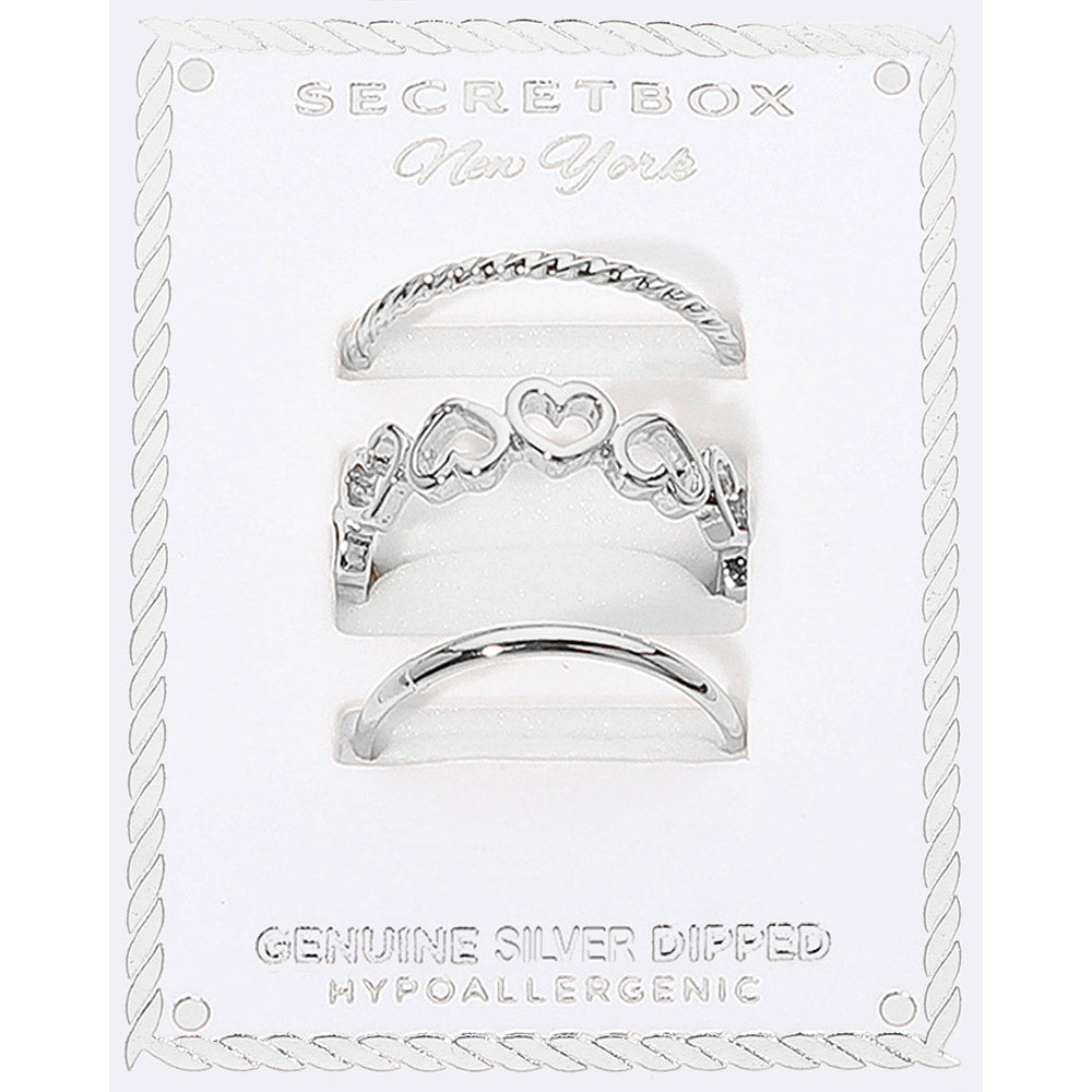 iLLASPARKZ SECRET BOX_3PCS Genuine Silver Dipped Heart Band Stackable Fashion Ring Set