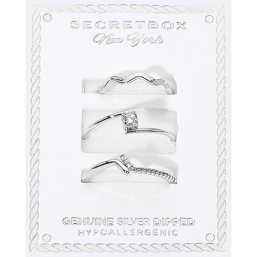 iLLASPARKZ SECRET BOX_3PCS Genuine Silver Dipped Minimalist Stackable Fashion Ring Set