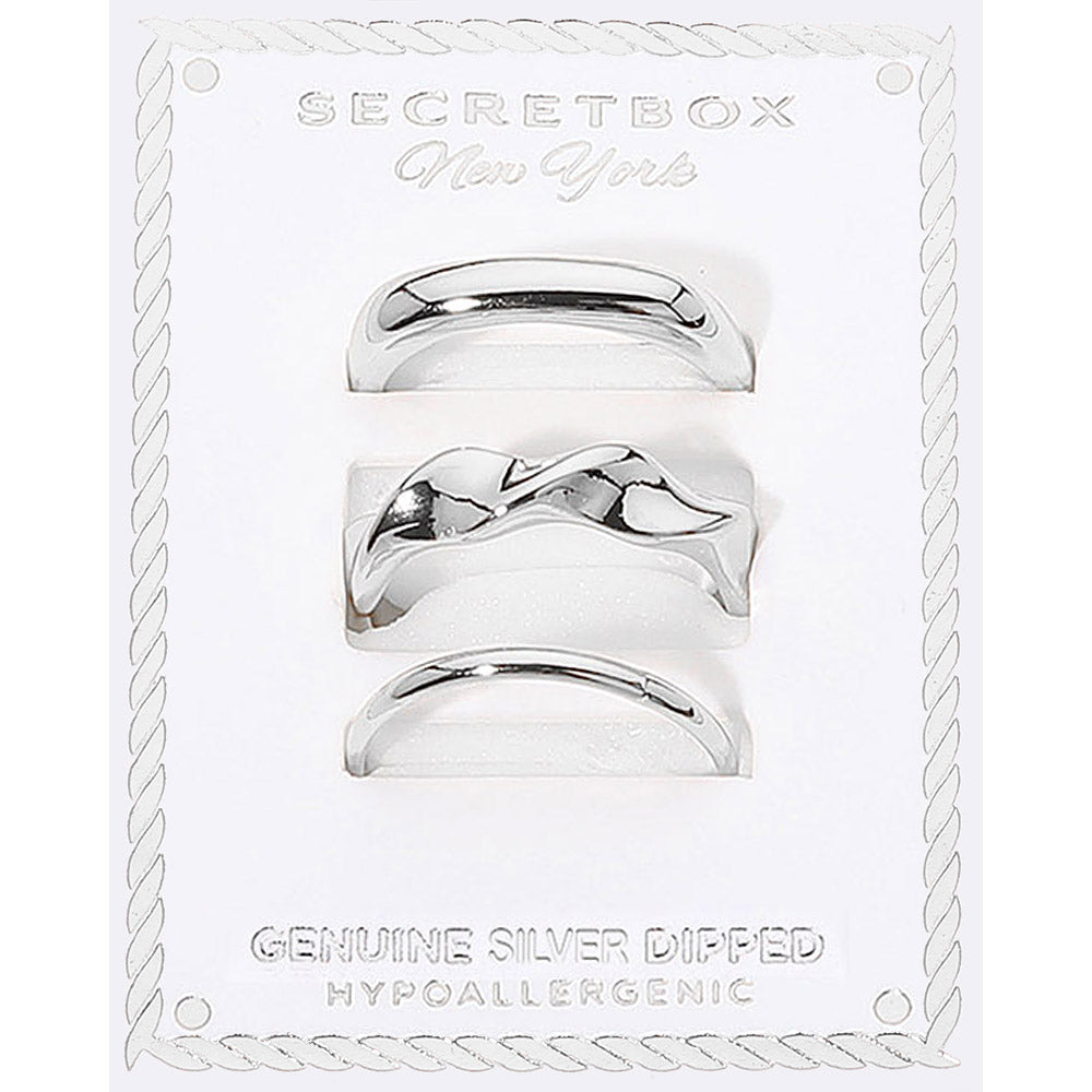 iLLASPARKZ SECRET BOX_3PCS Genuine Silver Dipped Sculptural Stackable Fashion Ring Set