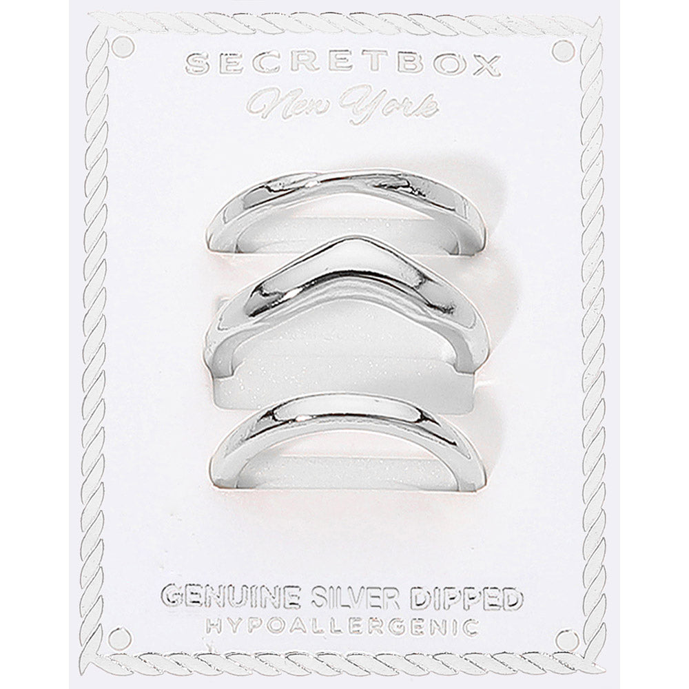 iLLASPARKZ SECRET BOX_3PCS Genuine Silver Dipped Smooth Curve Stackable Fashion Ring Set