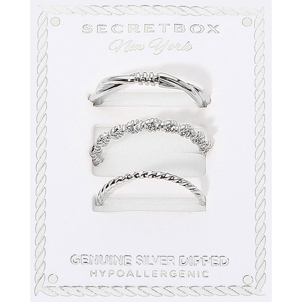 iLLASPARKZ SECRET BOX_3PCS Genuine Silver Dipped Textured Stackable Fashion Ring Set