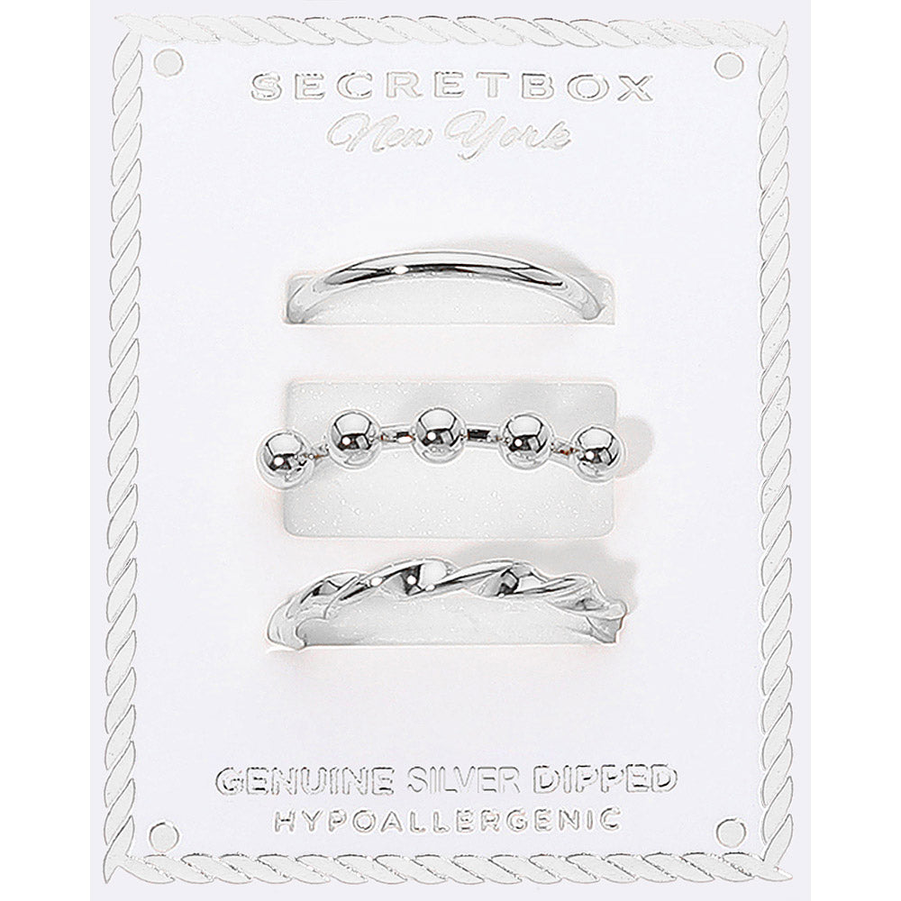 iLLASPARKZ SECRET BOX_3PCS Genuine Silver Dipped Twisted Beaded Sleek Band Stackable Fashion Ring Set