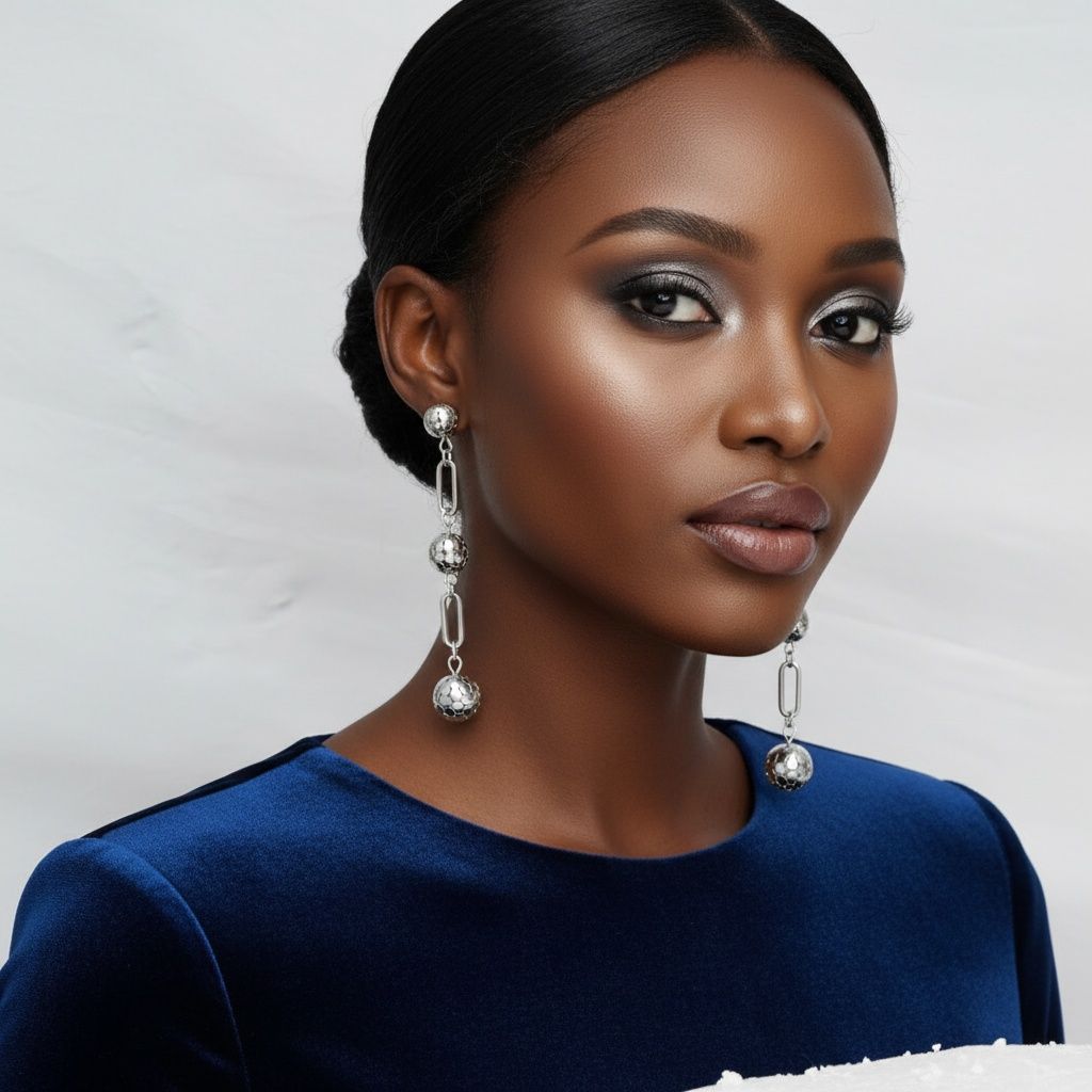 Women's Dangle Earrings. Office to Evening Versatility Long Linked Silver Metal Mesh Ball and Oval Link Dangle Earrings. Post Backing.