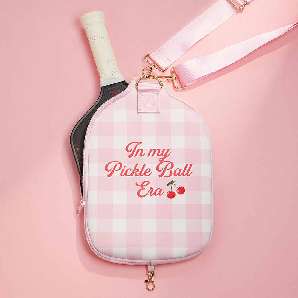 iLLASPARKZ In My Pickleball Era Message Neoprene Cherry Checker Pattern Pickleball Paddle Case Bag