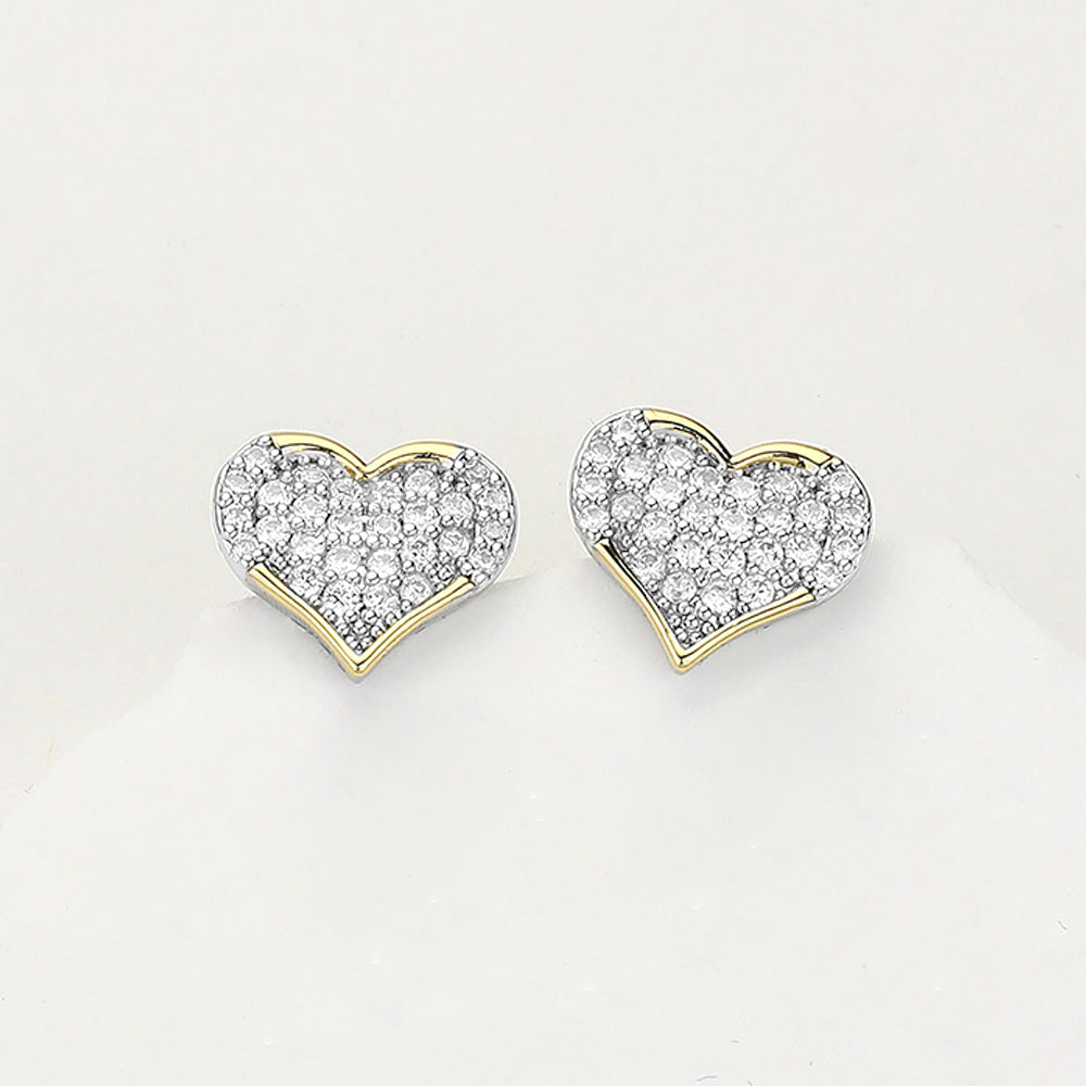 iLLASPARKZ 14K Gold Plated CZ Stone Paved Heart Stud Earrings