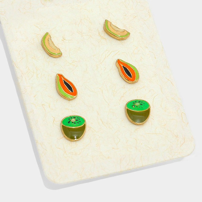 iLLASPARKZ 3 Pairs - enamel fruit kiwi stud earrings