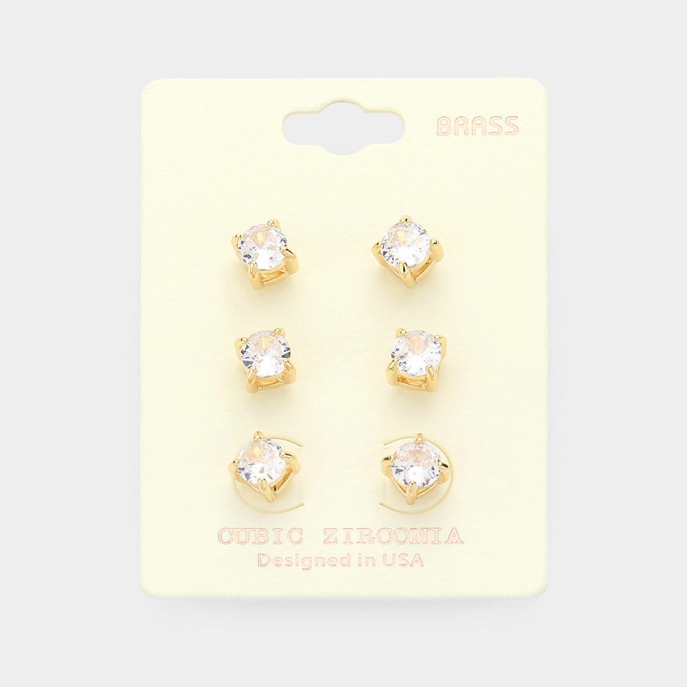 iLLASPARKZ 3PAIRS - CZ Cubic Zirconia Round Stud Earrings
