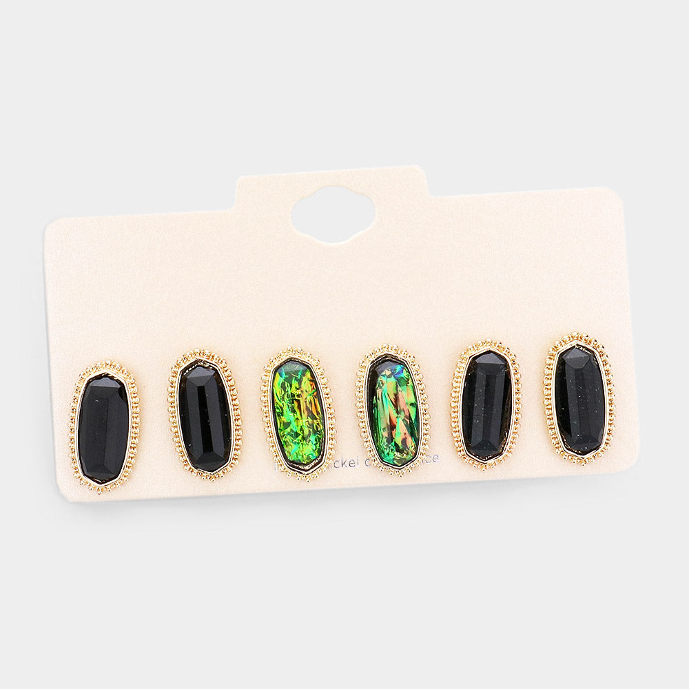 iLLASPARKZ 3Pairs - Gold Trim Hexagon Bead Stud Earrings