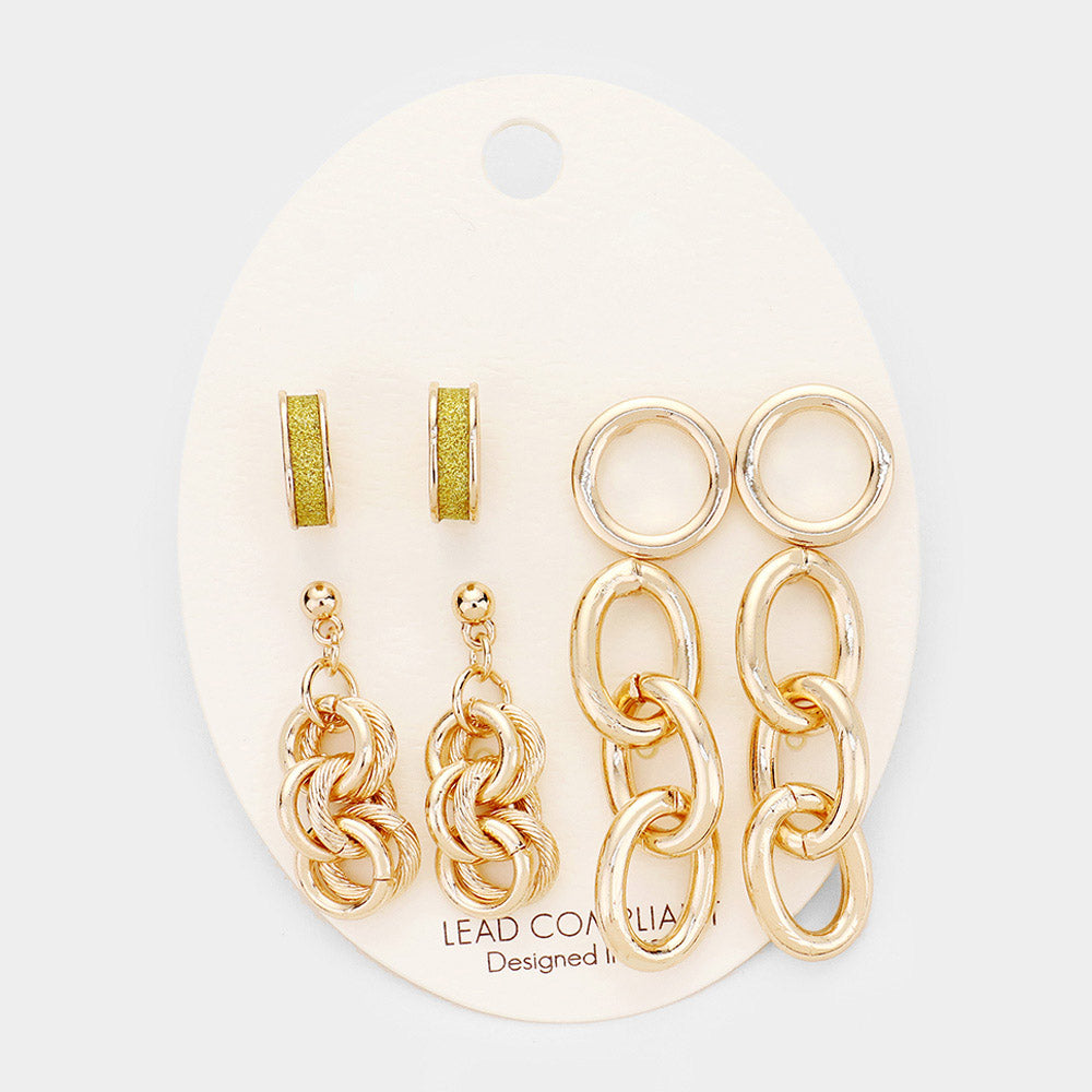 iLLASPARKZ 4Pairs - Metal Open Circle Link Stud Earrings