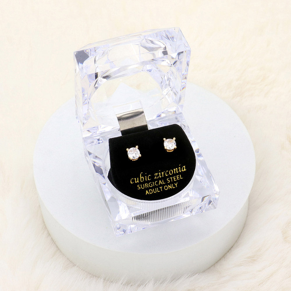 iLLASPARKZ 5mm Round Cut Crystal Cubic Zirconia CZ Stud Earrings with Clear Box