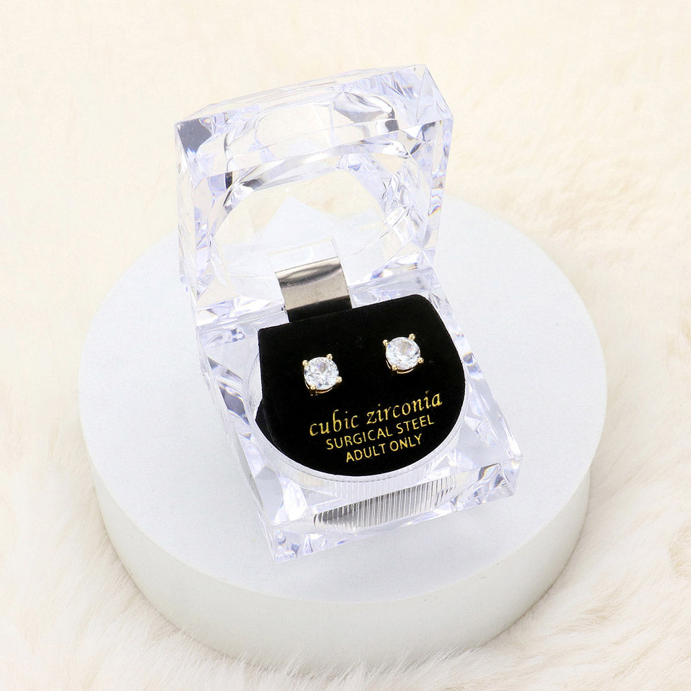 iLLASPARKZ 6mm Round Cut Crystal Cubic Zirconia CZ Stud Earrings with Clear Box