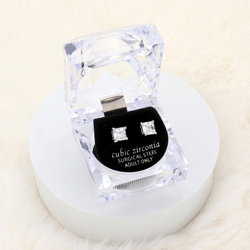 iLLASPARKZ 6mm Square Crystal Cubic Zirconia CZ Stud Earrings with Clear Box
